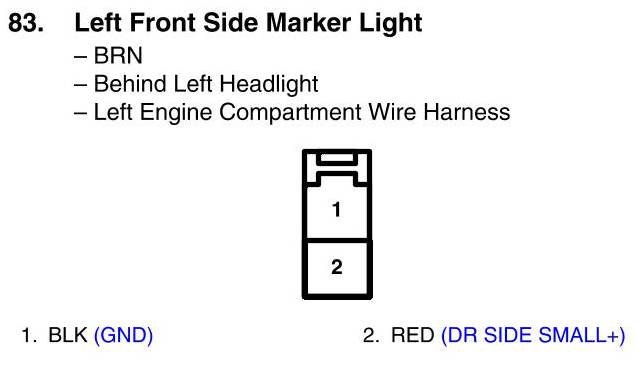 View 83 - Left Front Side Marker Light Connector View