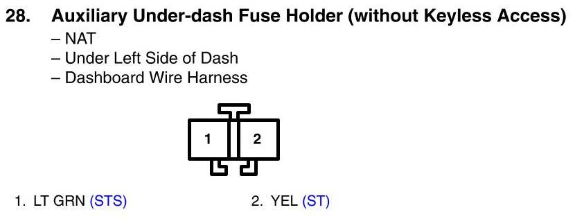 Auxiliary Under-Dash Fuse Holder Connector View (Without Keyless Access System)