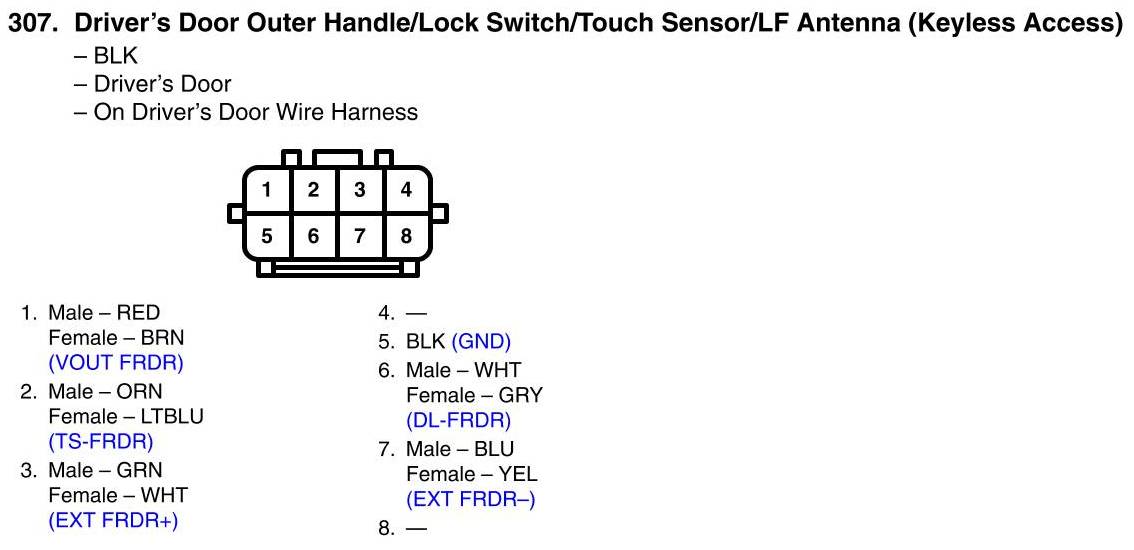Driver's Door Outer Handle/Lock Switch/Touch Sensor/LF Antenna Connector View (With Keyless Access System)