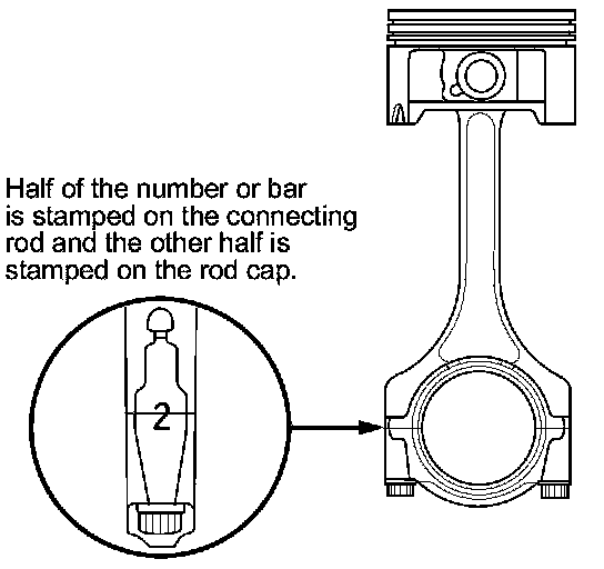 Numbers or bars have been stamped on the side of each connecting rod as a code for the size of the big end. Use them, and the letters or bars stamped on the crank (codes for rod journal size), to choose the correct bearings. If the codes are indecipherable because of an accumulation of dirt and dust, do not scrub them with a wire brush or scraper. Clean them only with solvent or detergent.