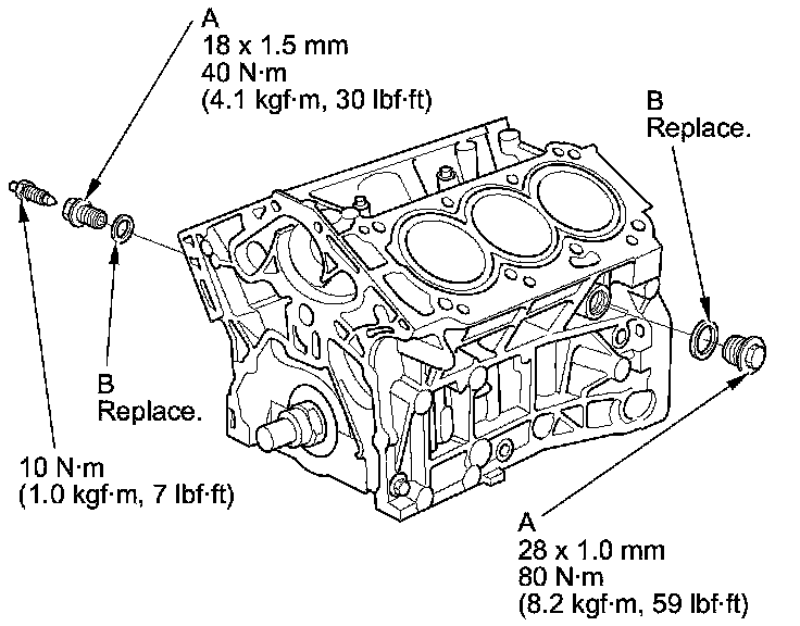 NOTE: When installing the sealing bolts (A), always use new washers (B).