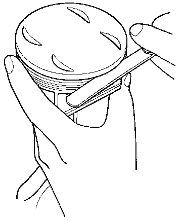 3. Clean all the ring grooves thoroughly with a squared-off broken ring, or a ring groove cleaner with a blade to fit the piston grooves. File down the blade, if necessary. The top ring and second ring grooves are 1.2 mm (0.047 in) wide, and the oil ring groove is 2.0 mm (0.079 in) wide. Do not use a wire brush to clean the ring grooves, or cut the ring grooves deeper with the cleaning tool.