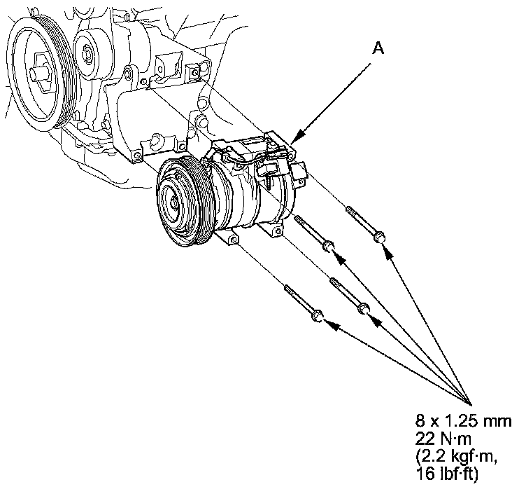 8. Install the A/C compressor in the reverse order of removal, and note these items: