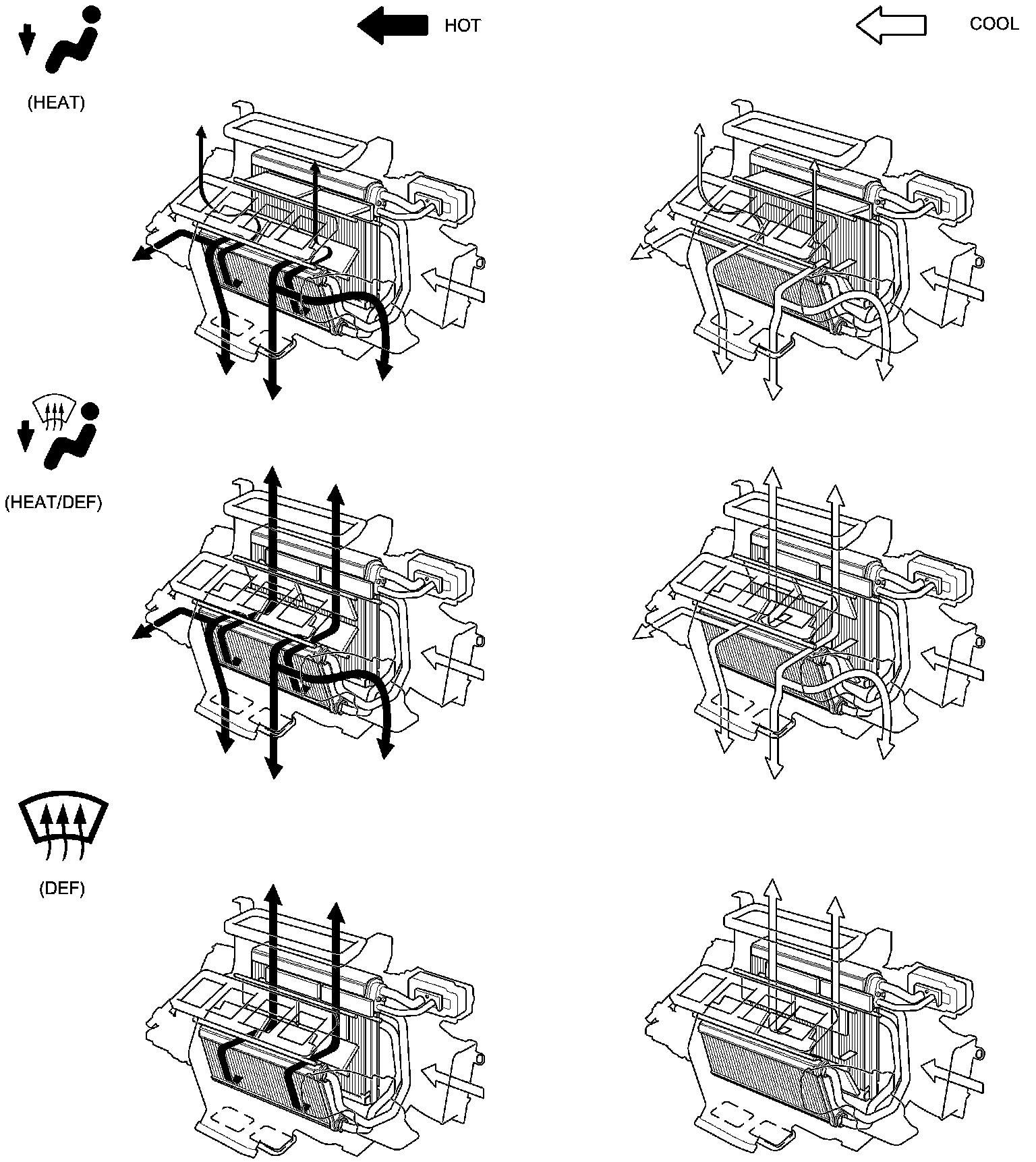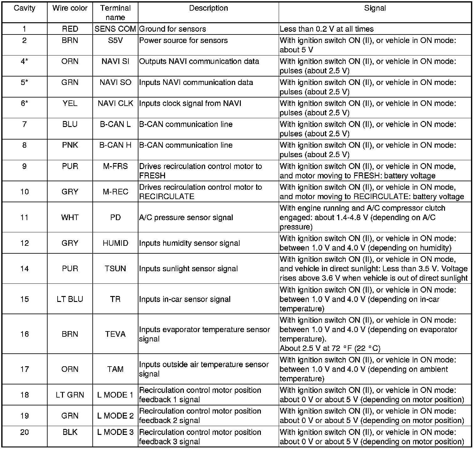 In the event that the navigation system malfunctions, or when driving in areas where the navigation cannot determine the vehicle position (non-coverage areas, tunnels, etc.), the climate control system will operate the same as a vehicle without navigation.