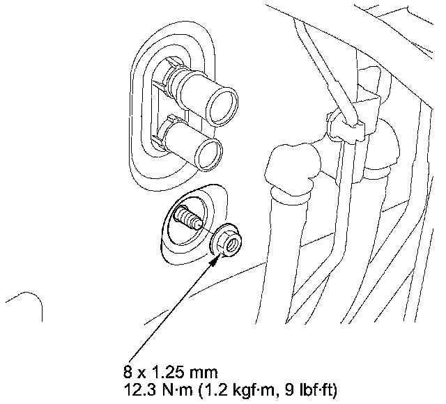 6. Remove the mounting nut from the heater unit. Take care not to damage or bend the fuel lines or the brake lines.