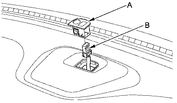 1. Pull out the sunlight sensor (A) from the speaker lid, then disconnect the connector (B). Be careful not to damage the sensor or the dashboard.