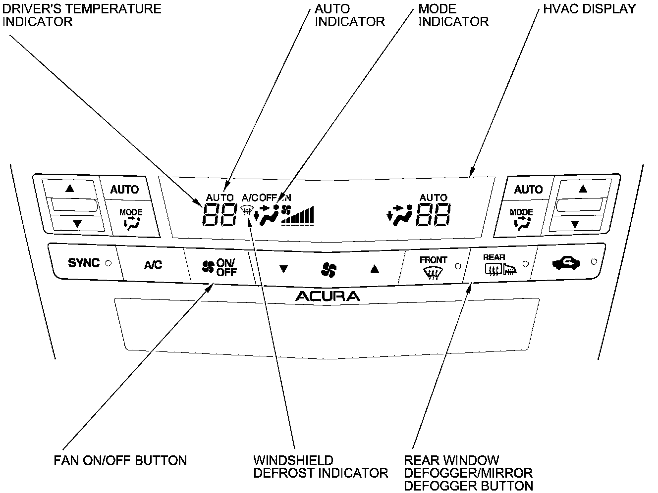 - If there is a problem with the system, it will flash AUTO, 88 and AUTO, 88 and WINDSHIELD DEFROST, or 88 and MODE, and one or more of the 14 indicator segments (A through N). Refer to checking for DTCs.