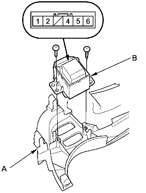 2. Remove the two screws and dashlights brightness controller switch (B) from the instrument fascia.