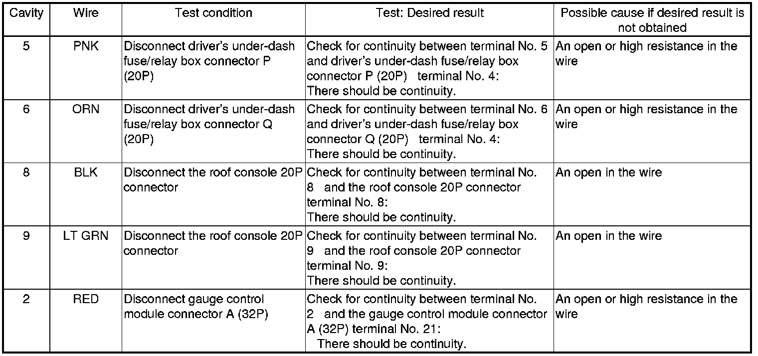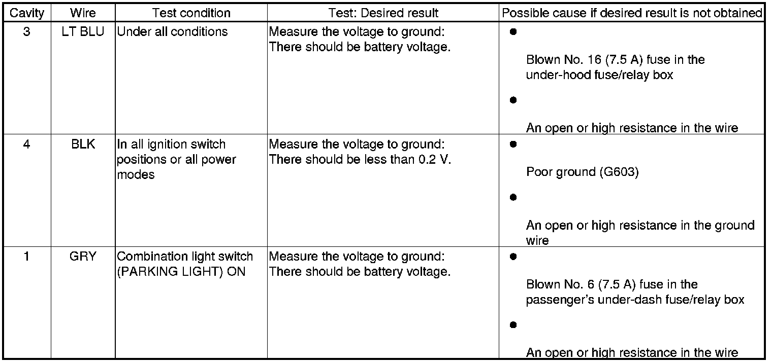 6. Reconnect the connector to the rear individual map light, and do the following input tests: