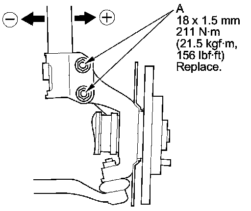 3. Loosen the damper pinch bolts (A), and adjust the camber angle by moving the bottom of the damper within the range of the damper pinch bolt free play.