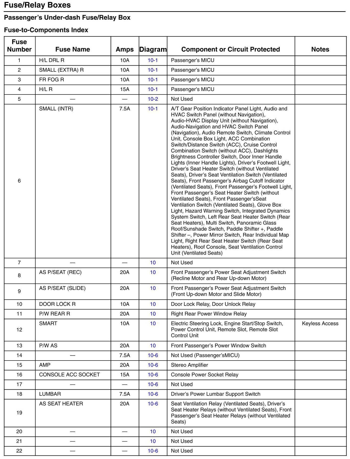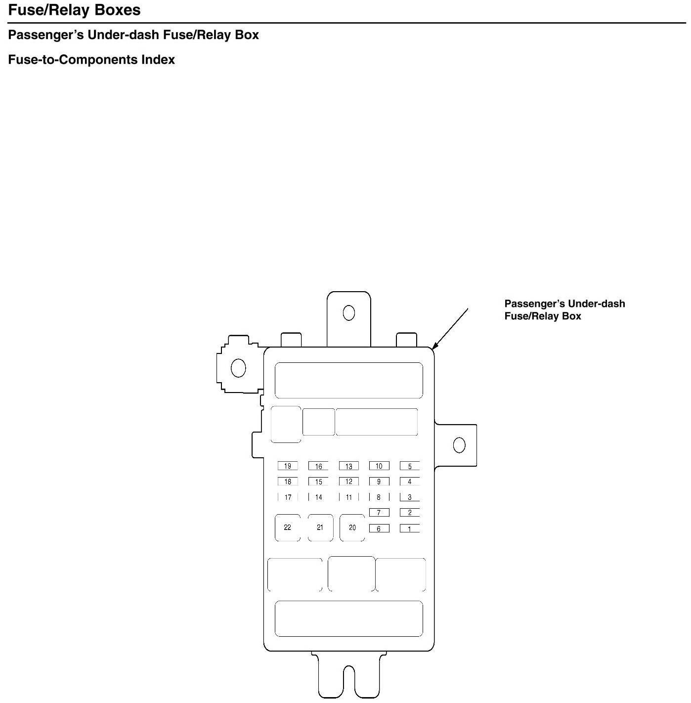 Passenger's Under-Dash Fuse/Relay Box - Fuse-to-Components Index