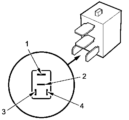 - There should be continuity between terminals No. 1 and No. 2 when battery power is connected to terminal No. 4, and body ground is connected to terminal No. 3.