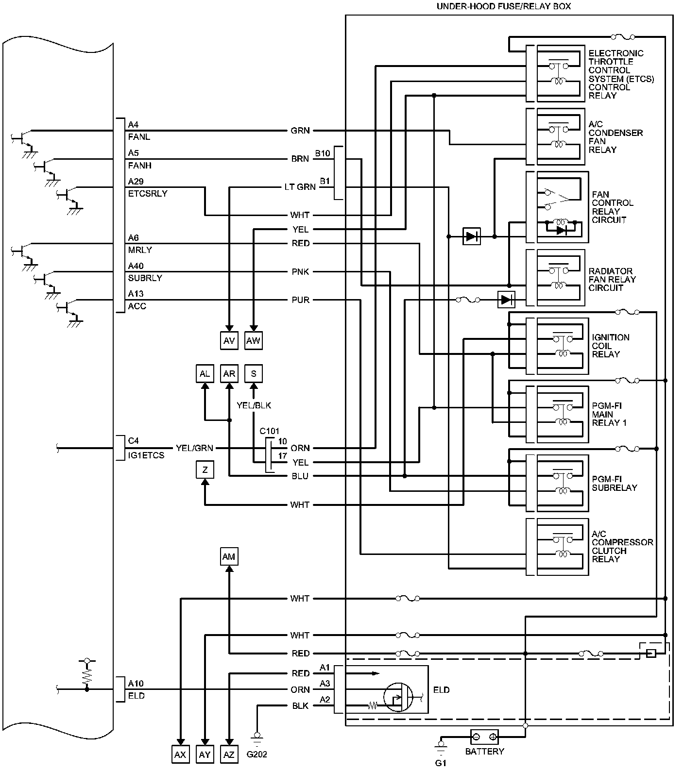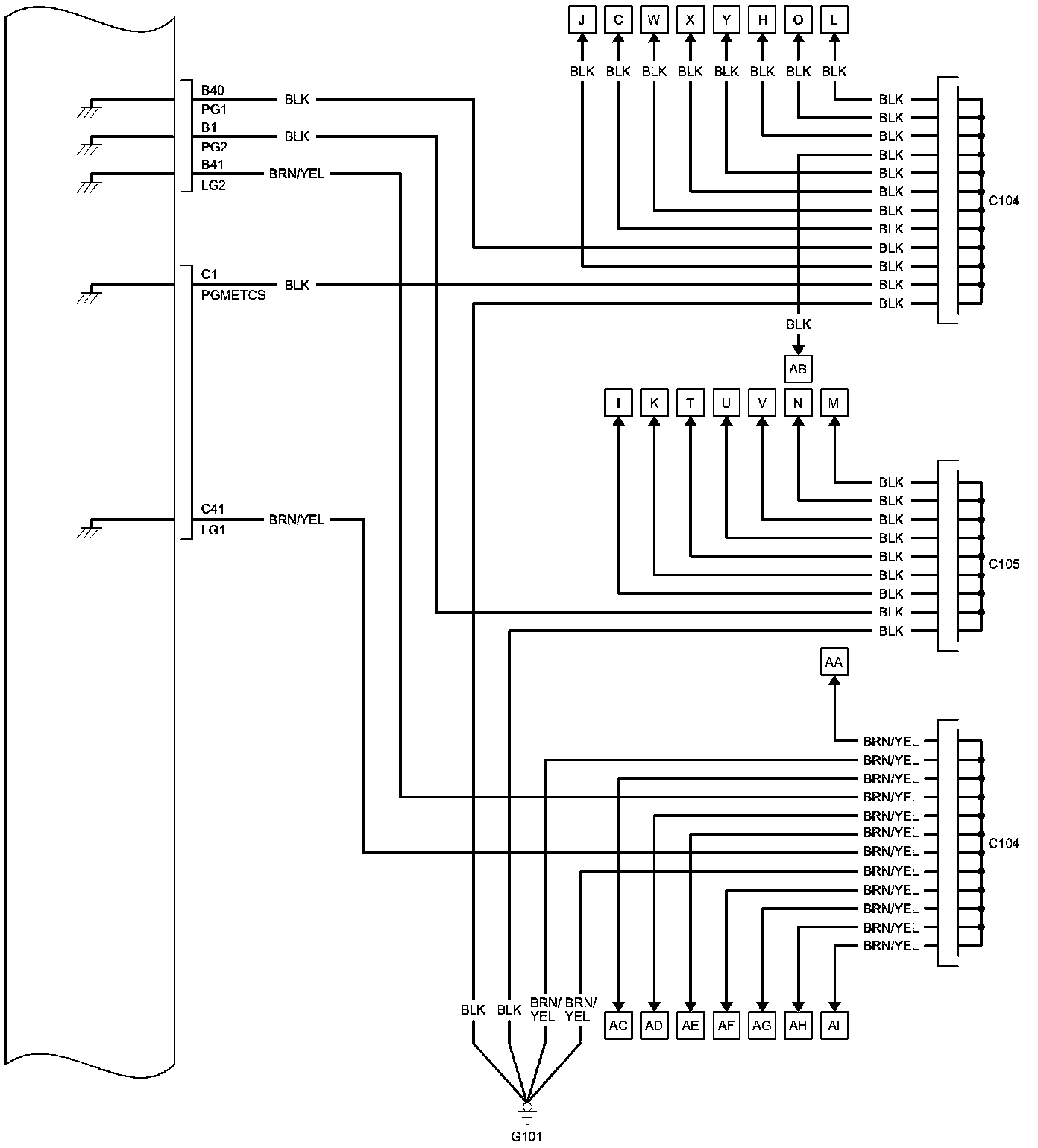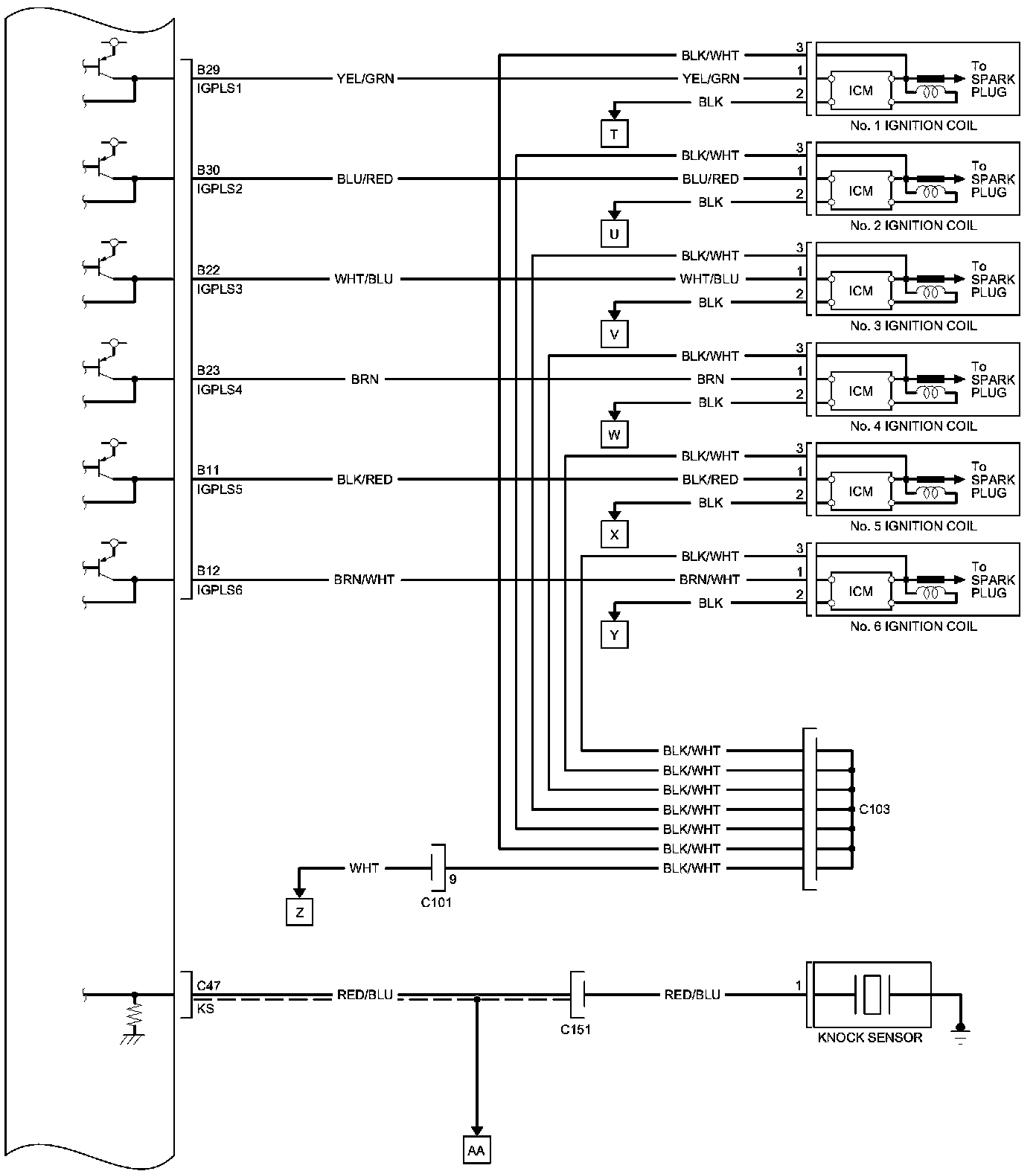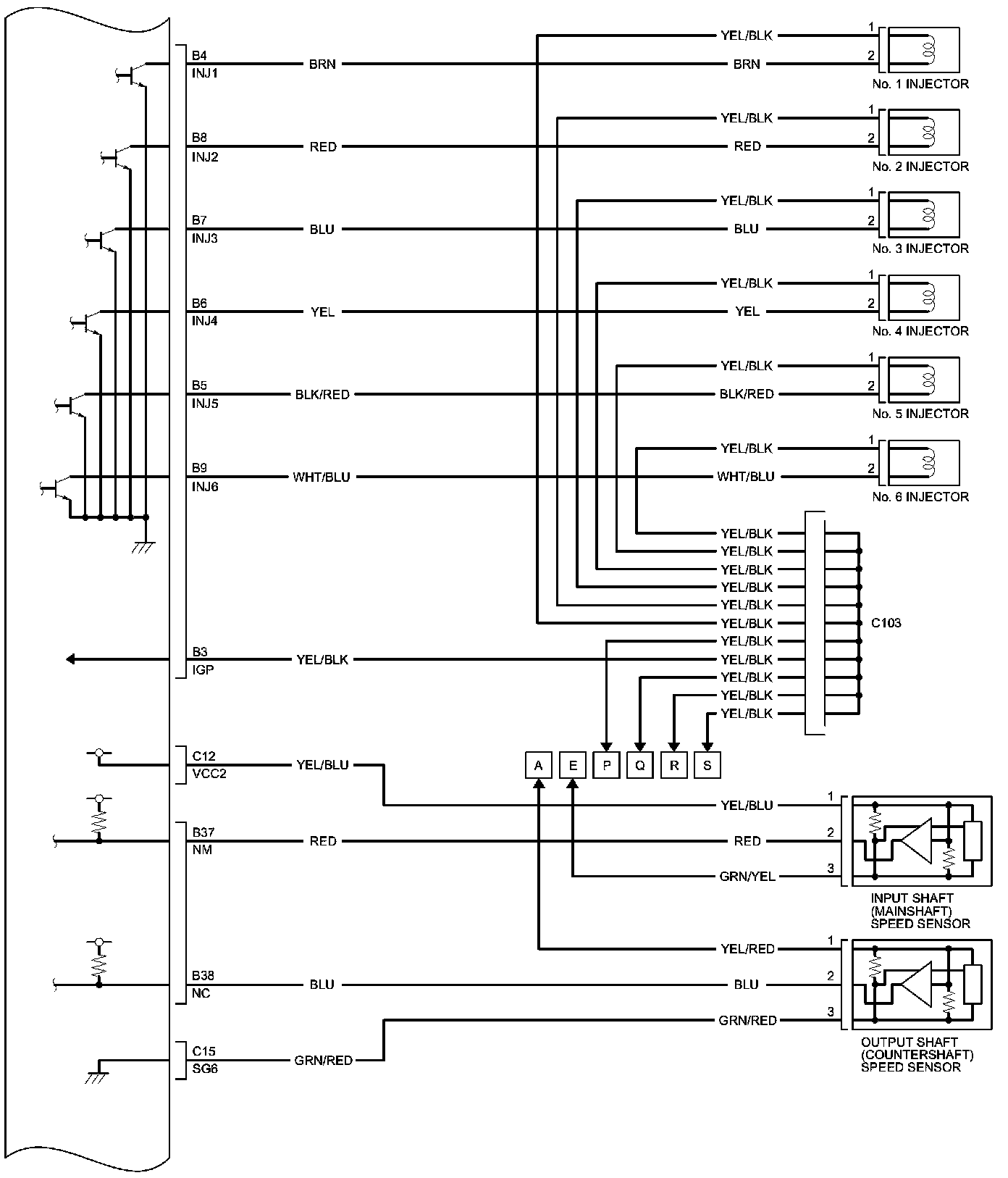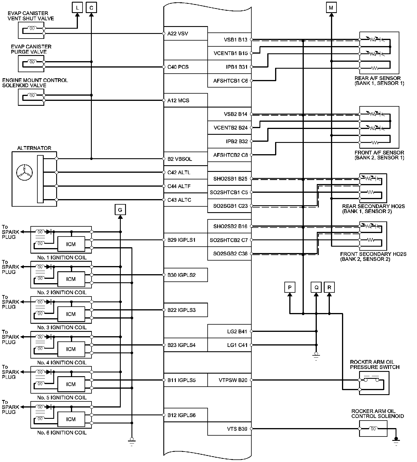 PCM Inputs and Outputs at PCM Connector C (circle) (49P)