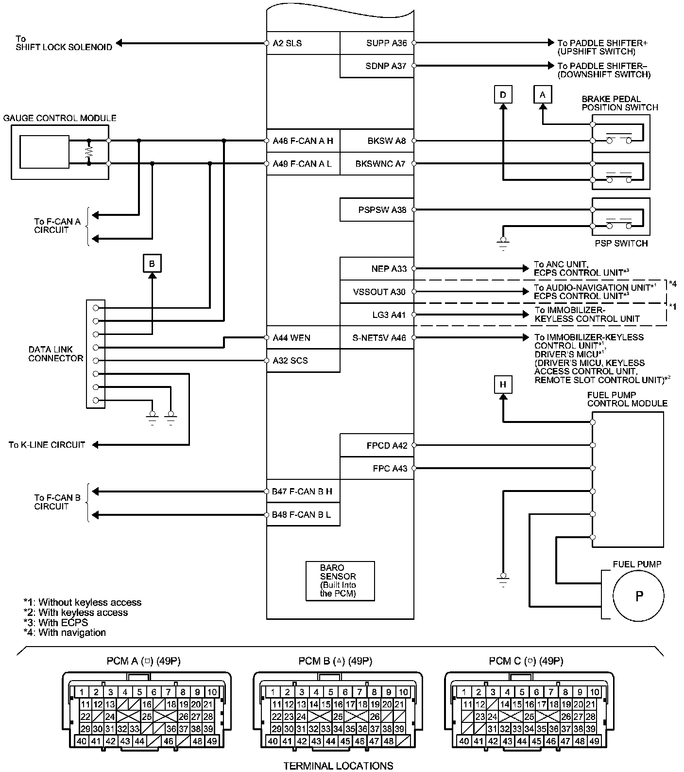 PCM Inputs and Outputs at PCM Connector B (triangle) (49P)