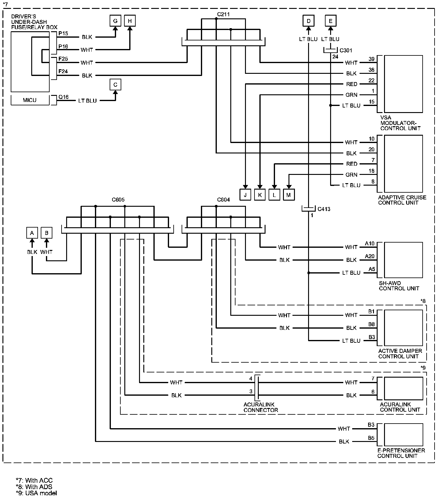 PCM Inputs and Outputs at PCM Connector A (square) (49P)