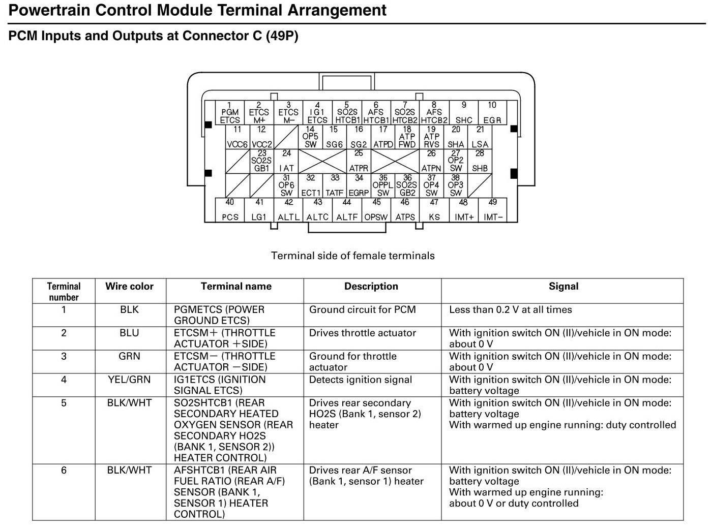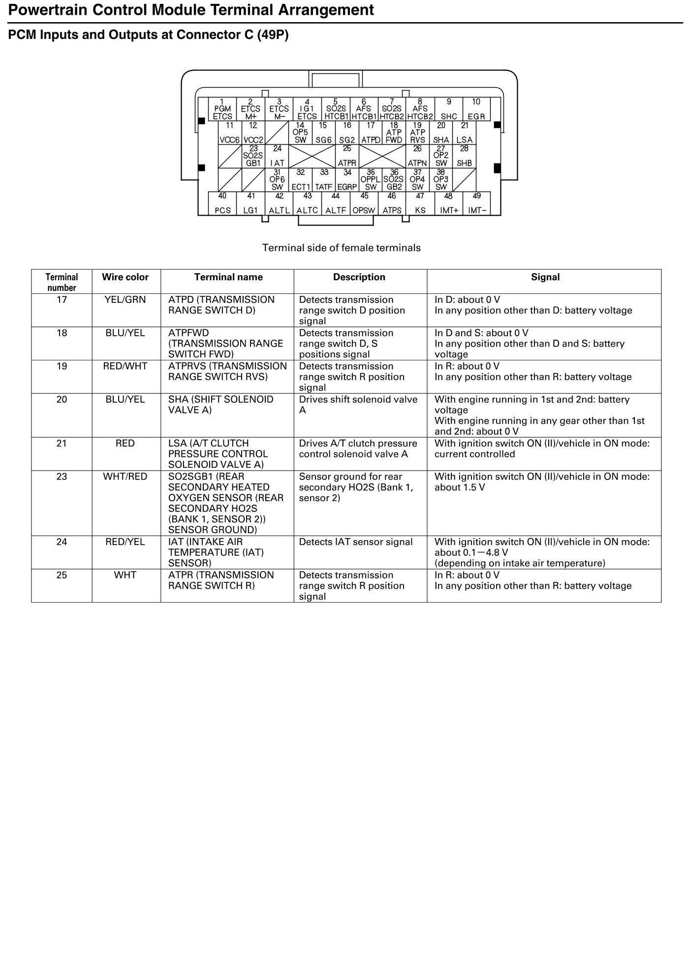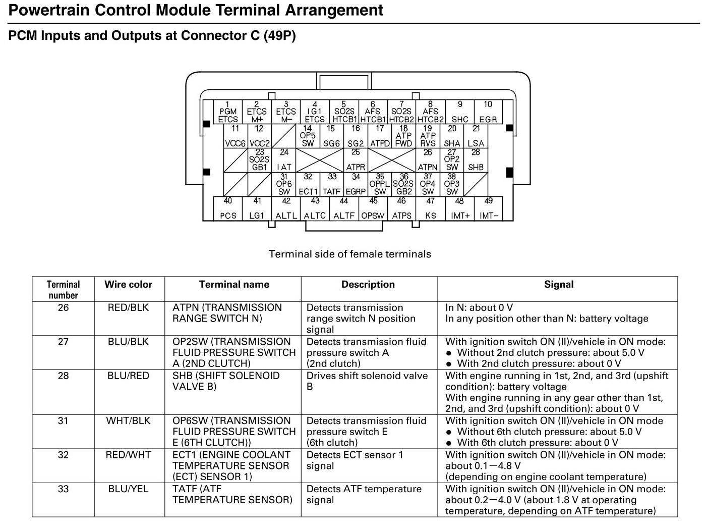 PCM Inputs And Outputs At Connector C