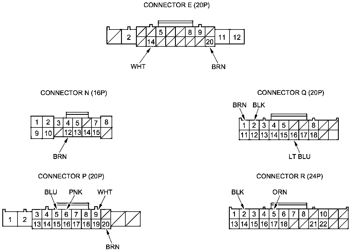 3. Disconnect driver's under-dash fuse/relay box connectors E, N, P, Q, and R.