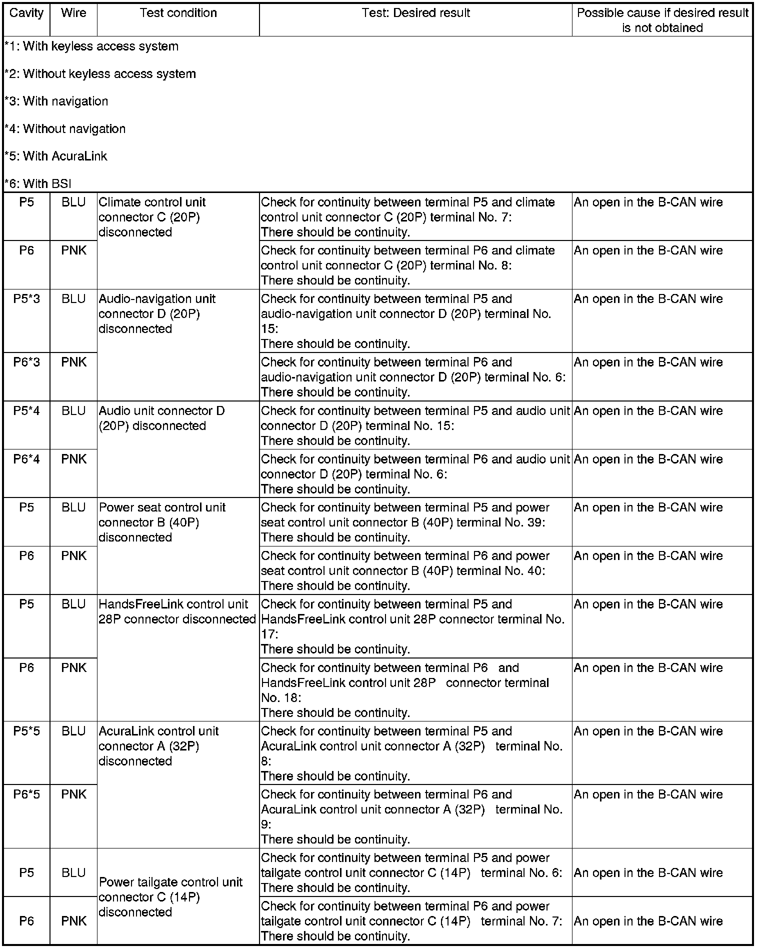 NOTE: Before testing, troubleshoot the multiplex integrated control system first, using B-CAN System Diagnosis Test Mode A Troubleshooting - B-CAN System Diagnosis Test Mode A.