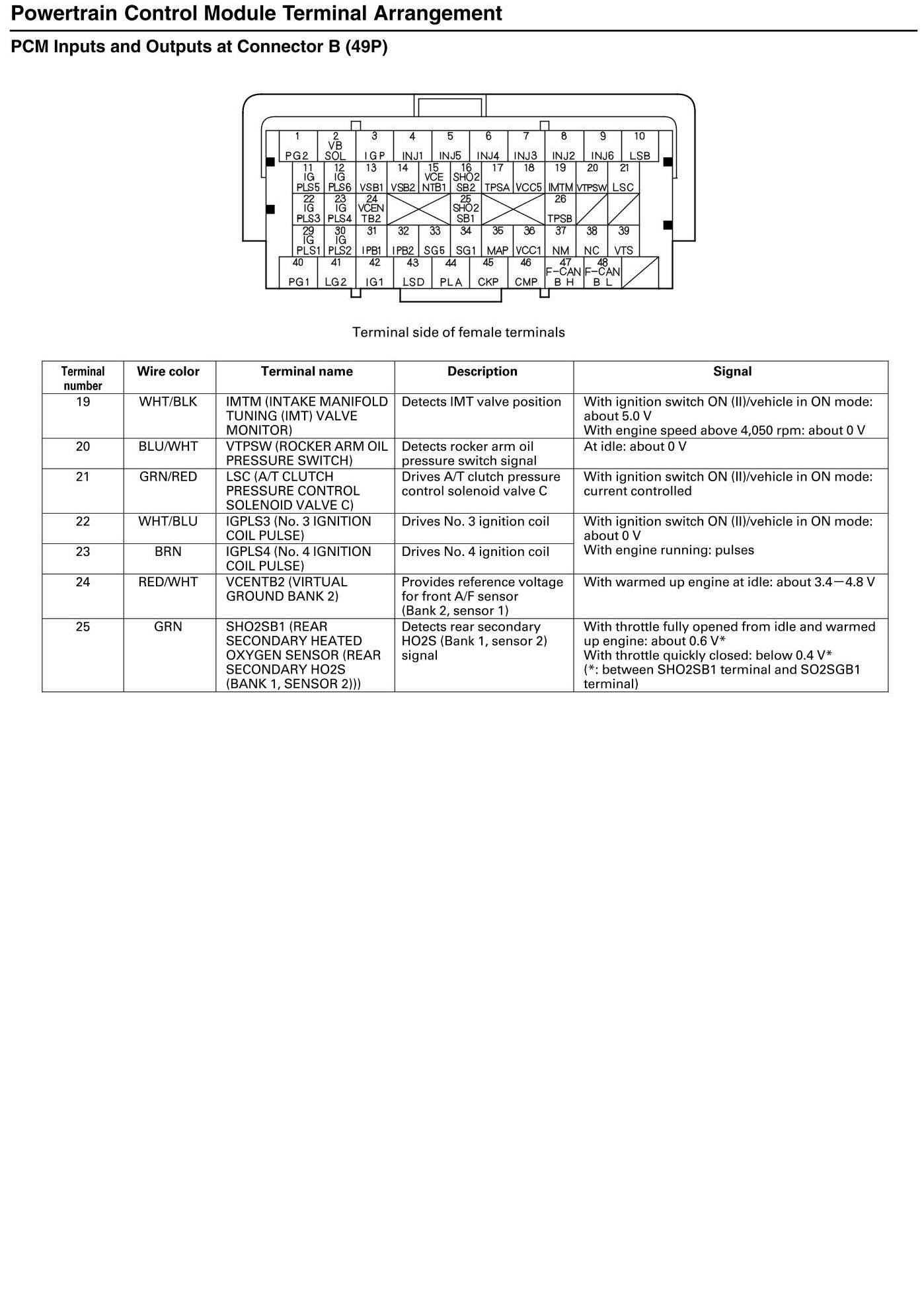 PCM Inputs and Outputs at Connector B