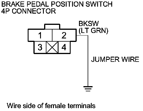 9. Connect brake pedal position switch 4P connector terminal No. 2 to body ground with a jumper wire.