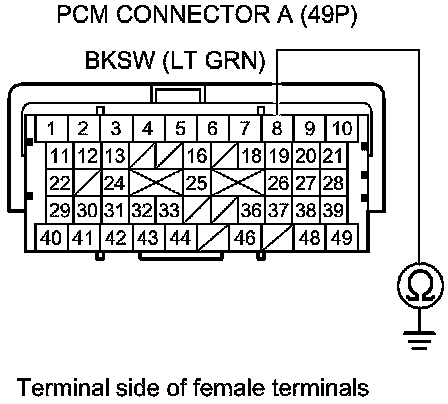 8. Check for continuity between PCM connector terminal A8 and body ground.