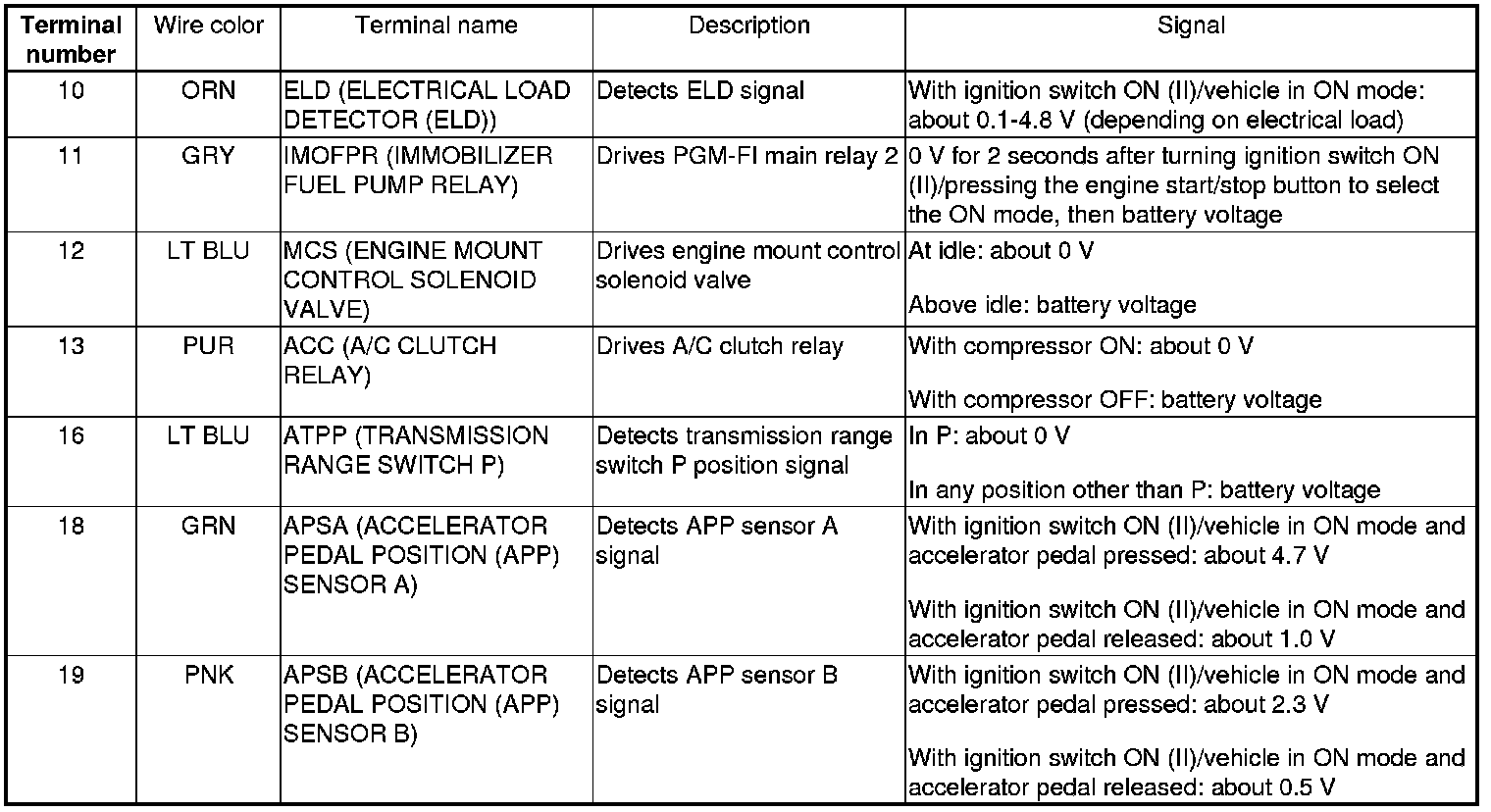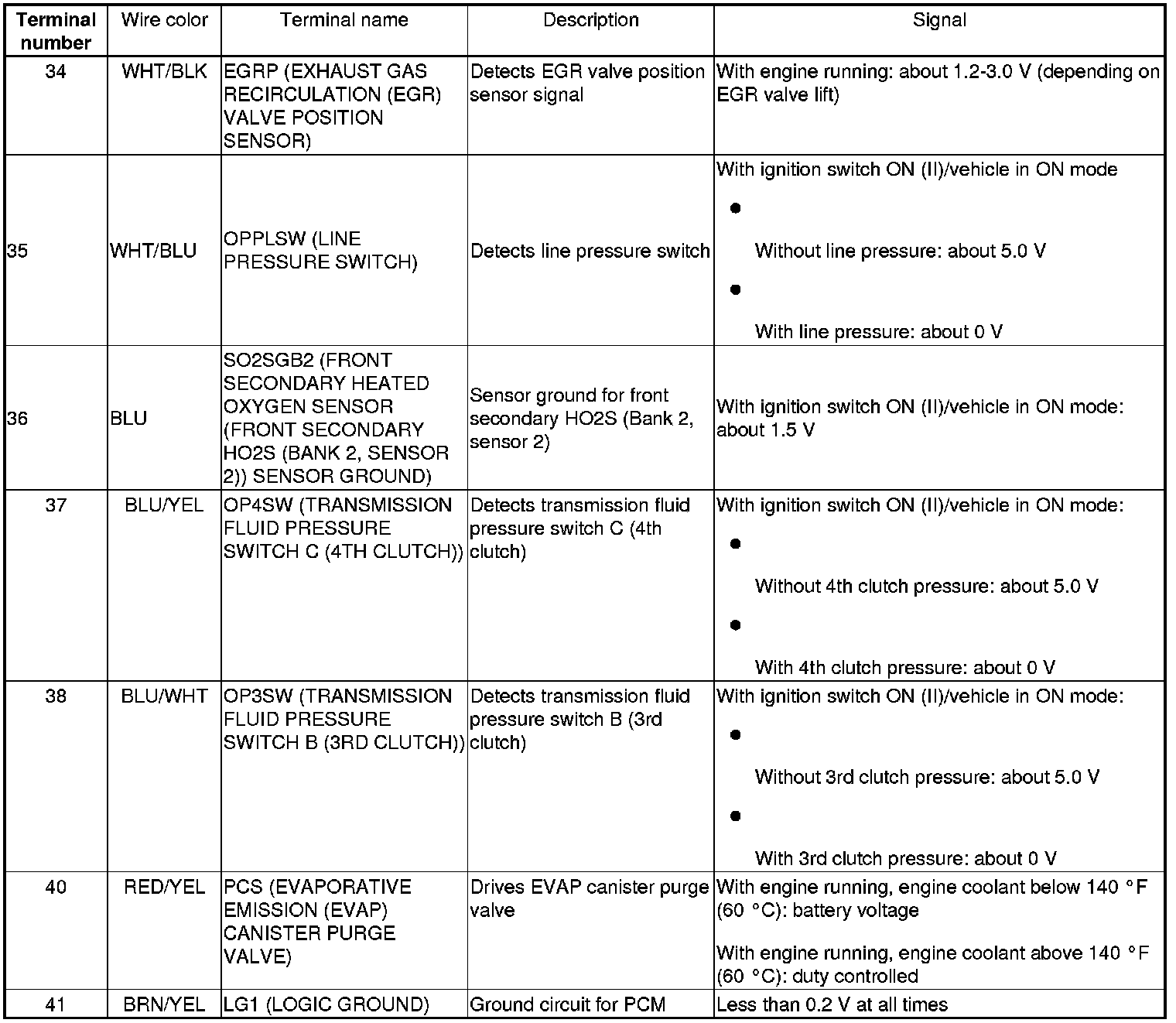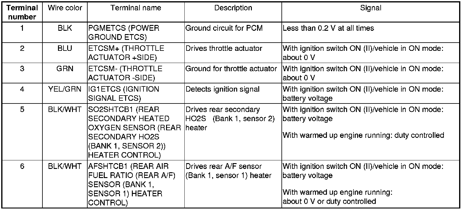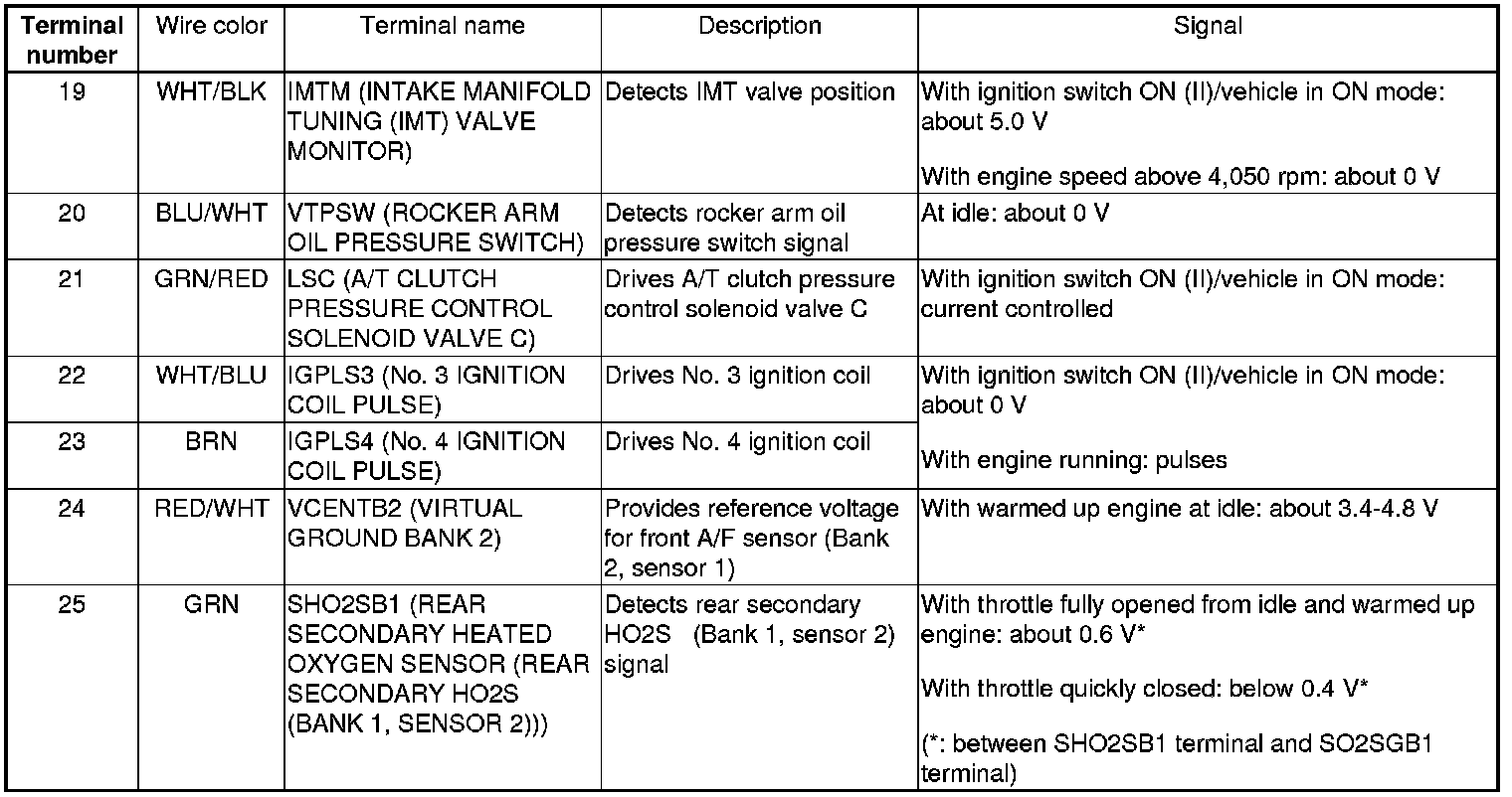 PCM Inputs and Outputs at PCM Connector A (square) (49P)