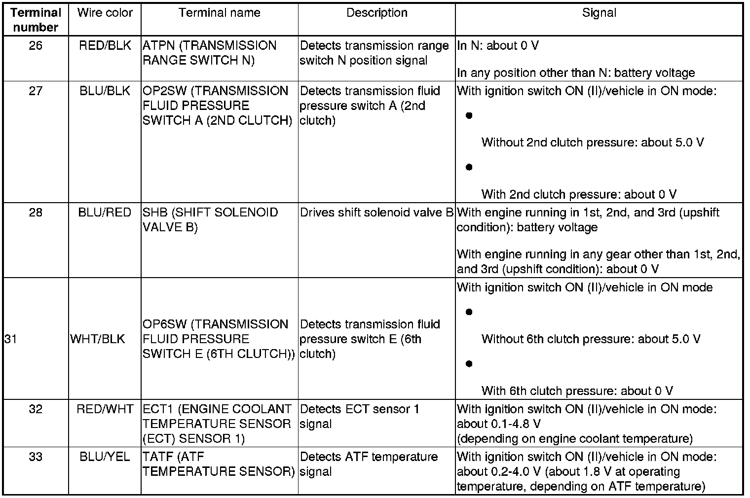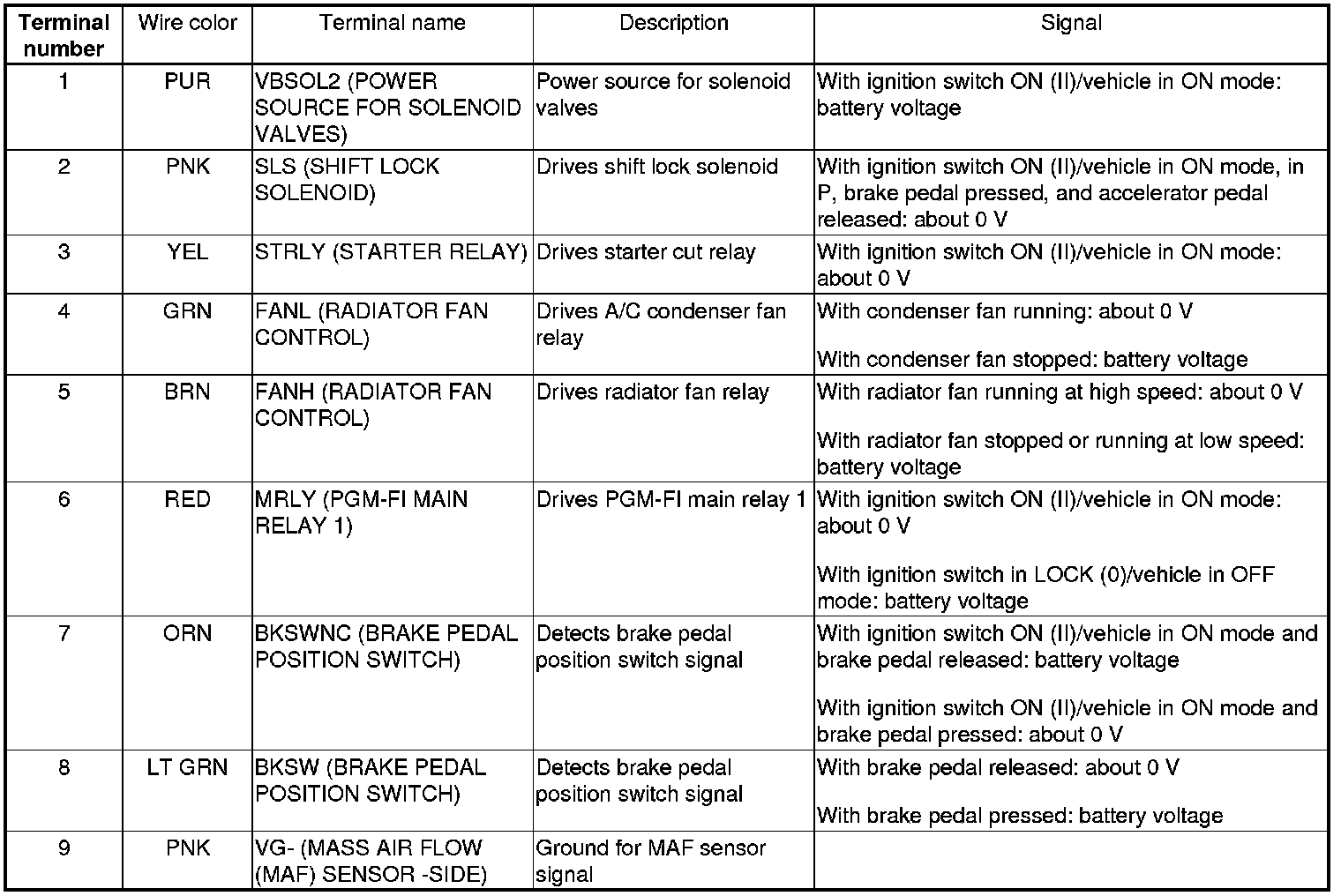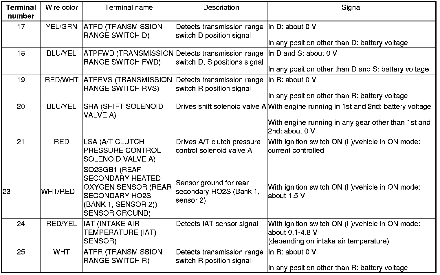 PCM Inputs and Outputs at PCM Connector A (square) (49P)