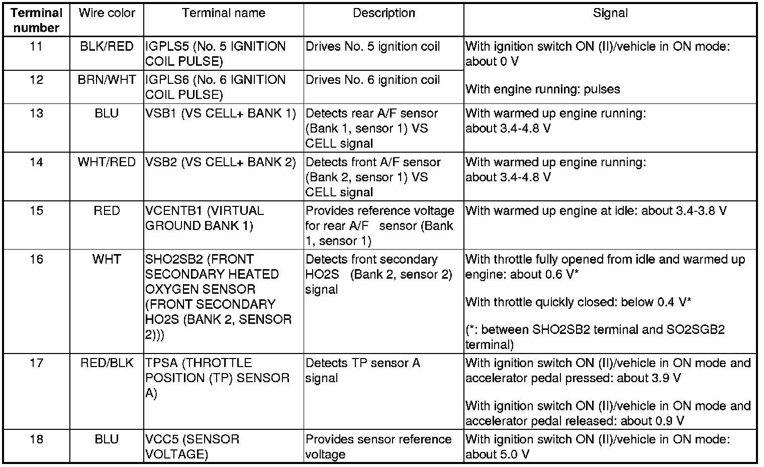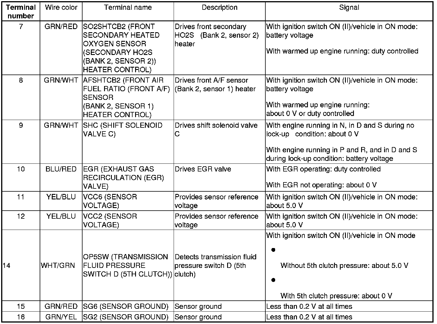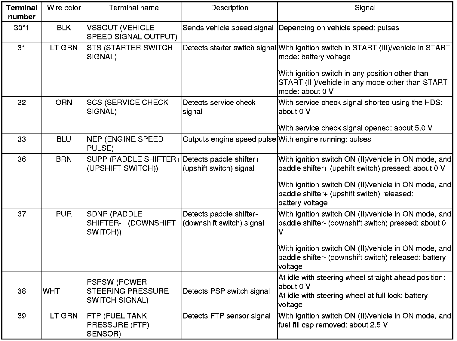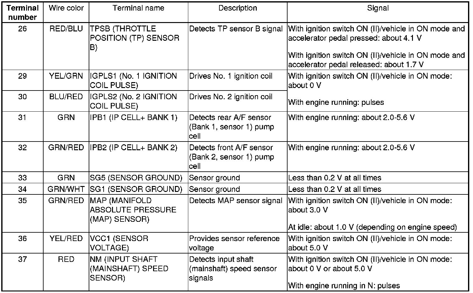 PCM Inputs and Outputs at PCM Connector A (square) (49P)