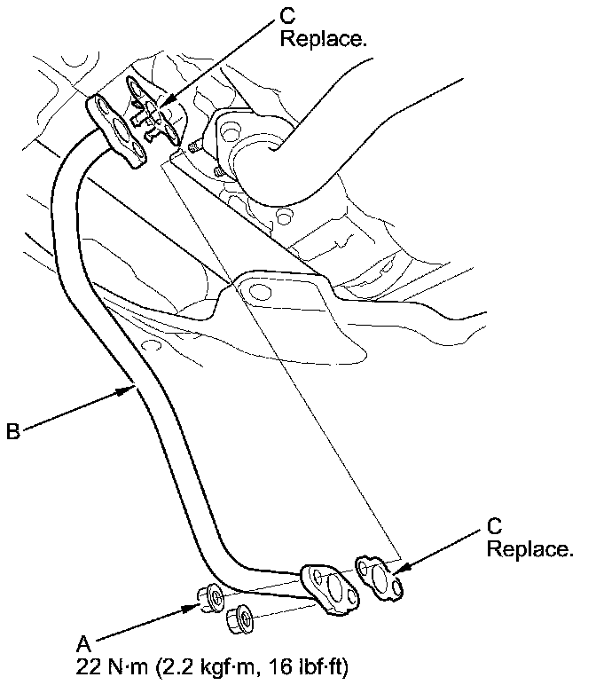 6. Install the parts in the reverse order of removal with new gaskets (C).