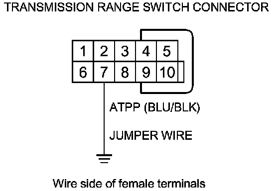 25. Connect a jumper wire between transmission range switch connector terminal No. 7 and body ground.
