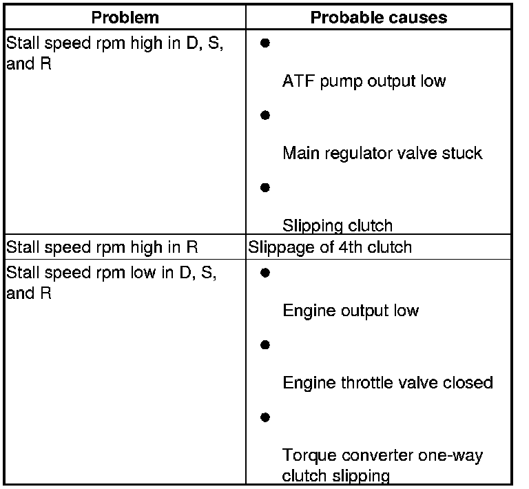 10. If any of the stall speeds are out of the service limit, refer to the problems and probable causes listed in the table.