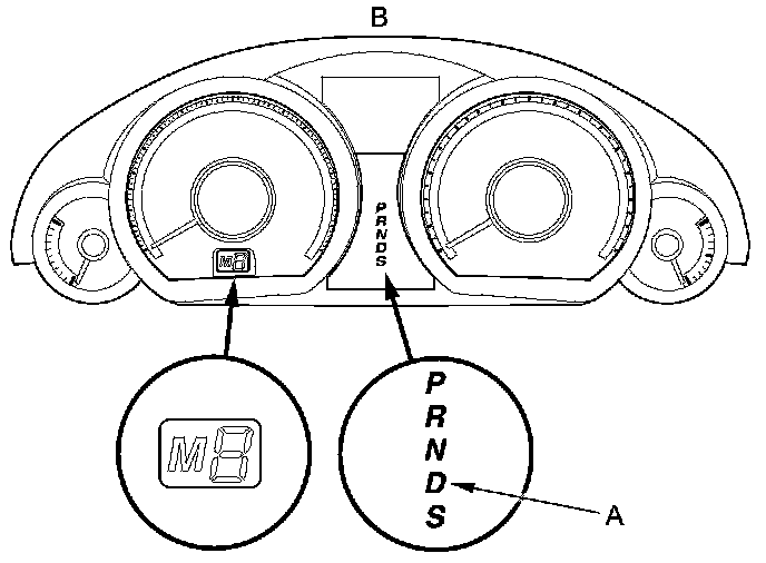 When the powertrain control module (PCM) senses an abnormality in the input or output system, the D indicator (A) in the gauge control module (B) will usually blink.