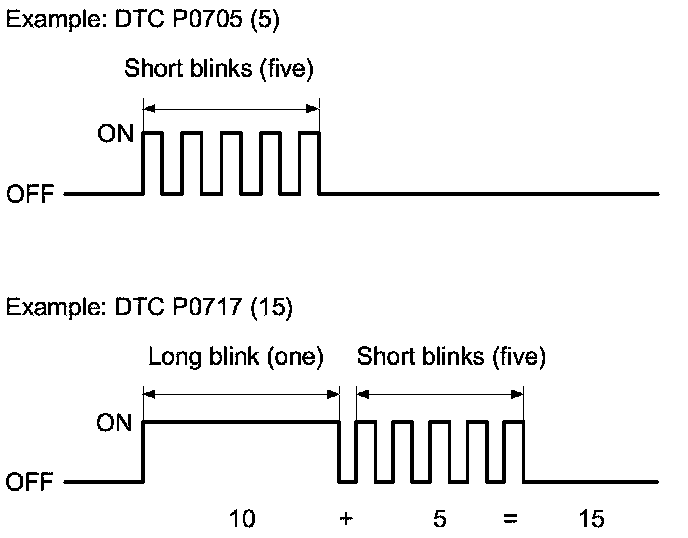 When an abnormality occurs in the signal from a sensor, a switch, a solenoid valve, or from another control unit in the first drive cycle, the PCM stores a Pending DTC. The D indicator and the MIL do not turns on at this time. If the failure continues in the second drive cycle, the PCM stores a Confirmed DTC and blinks the D indicator and/or turns on the MIL.