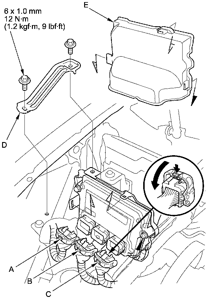 3. Disconnect PCM connectors A, B, and C.