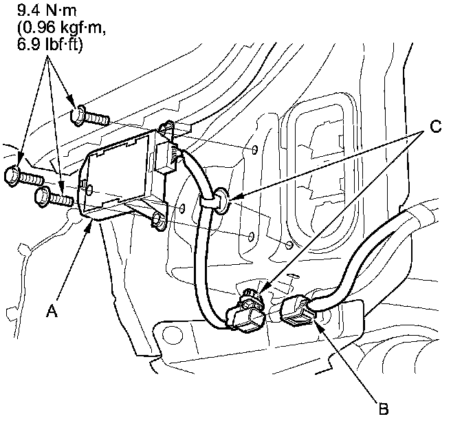 3. Remove the bolts and the BSI radar unit (C).