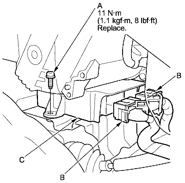 10. Remove the SRS unit (B) from the driver's side.