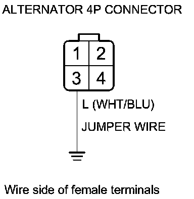 17. Connect alternator 4P connector terminal No. 3 and body ground with a jumper wire.
