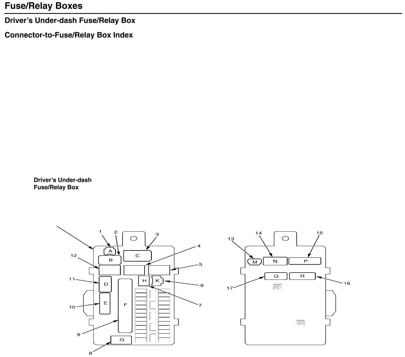 Driver's Under-dash Fuse/Relay Box - Connector-to-Fuse/Relay Box Index