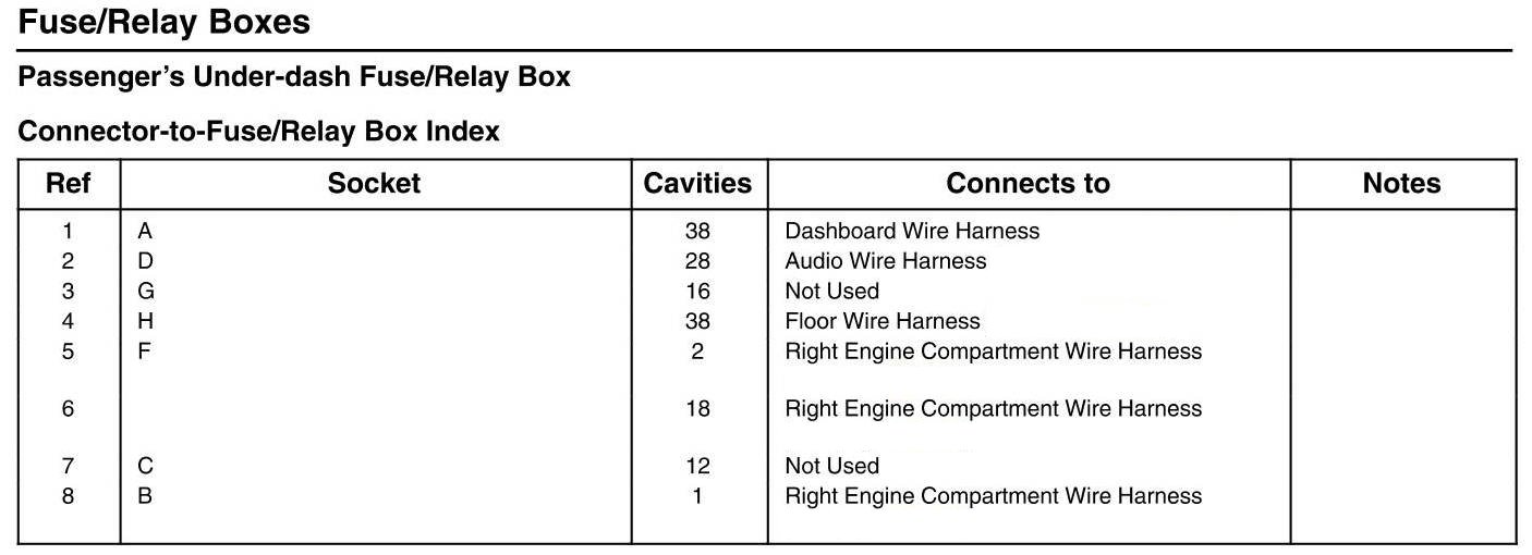 Passenger's Under-dash Fuse/Relay Box - Connector-to-Fuse/Relay Box Index