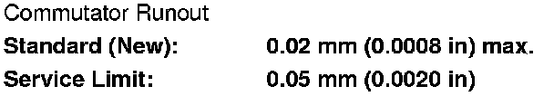 - If the commutator runout is within the service limit, check the commutator for carbon dust or brass chips between the segments.