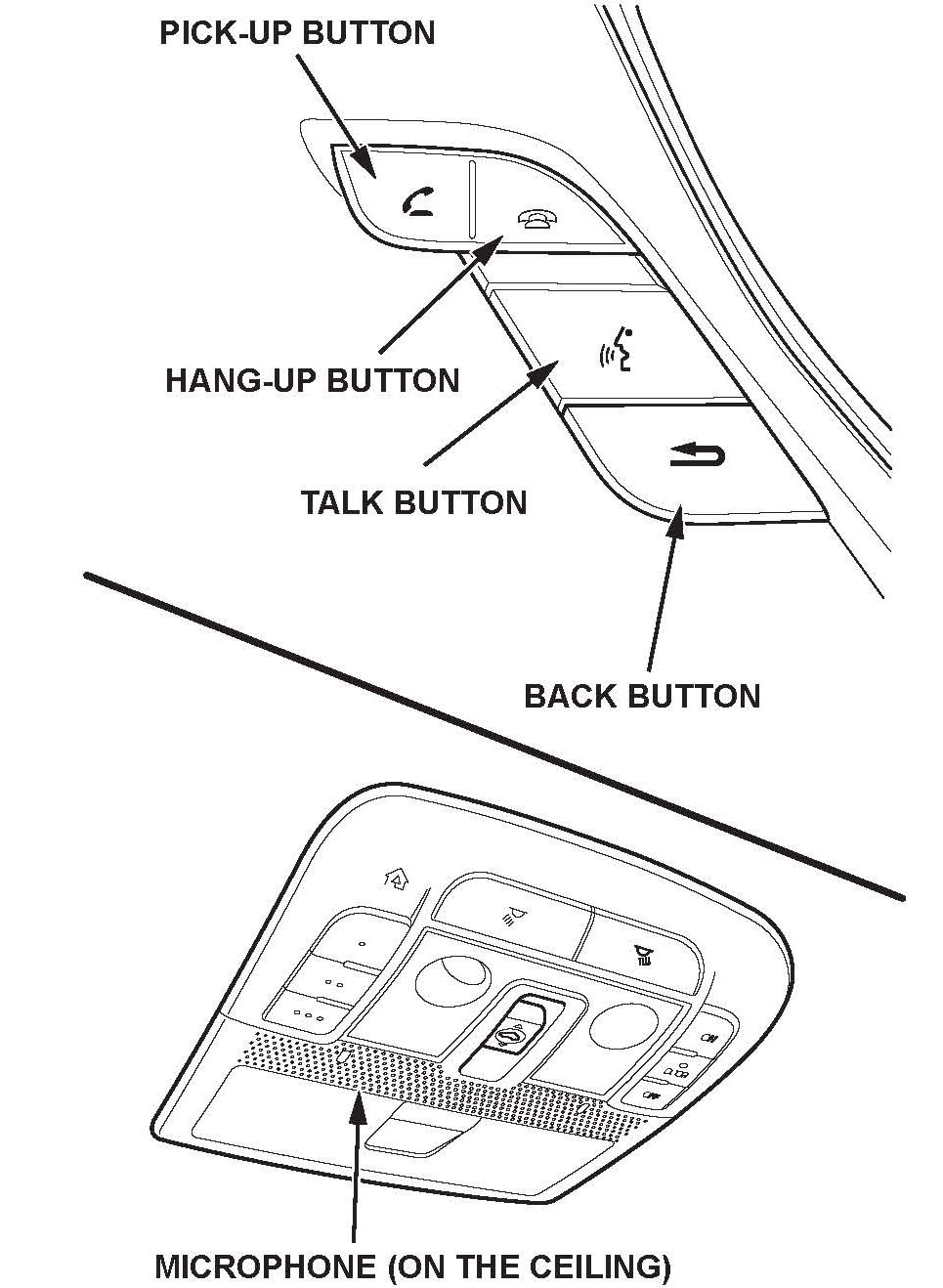 TALK button - Press and release this button on the steering wheel to activate the voice control system. After pressing and releasing the TALK button, wait for the beep, and then speak the command.