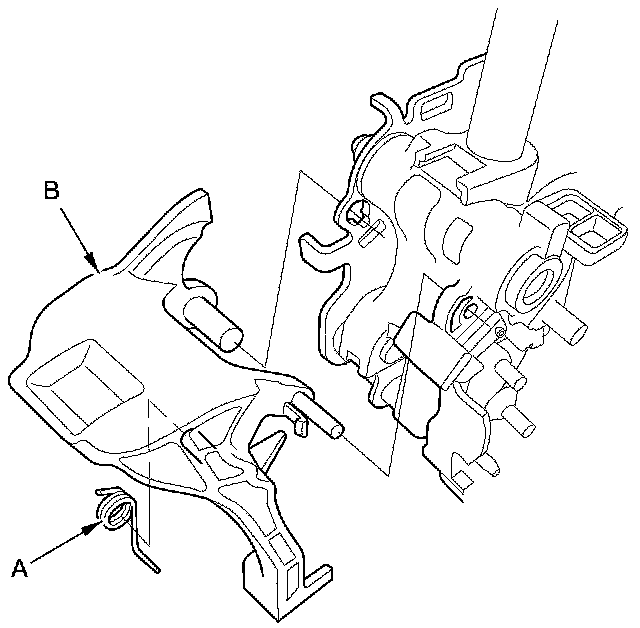 3. Remove the release spring (A) from the shift lock release (B).