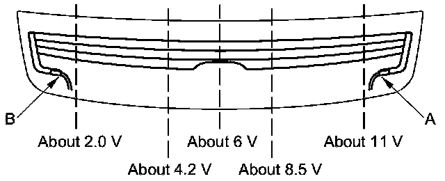 - If the voltage is not as specified, repair the defogger wire.