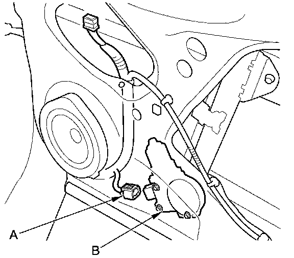 4. Disconnect the 6P connector (A) from the front passenger's power window motor (B).