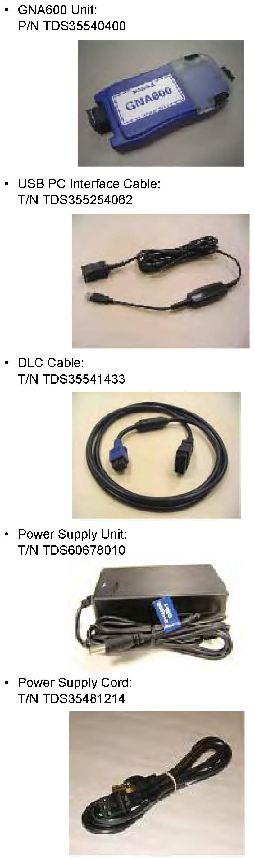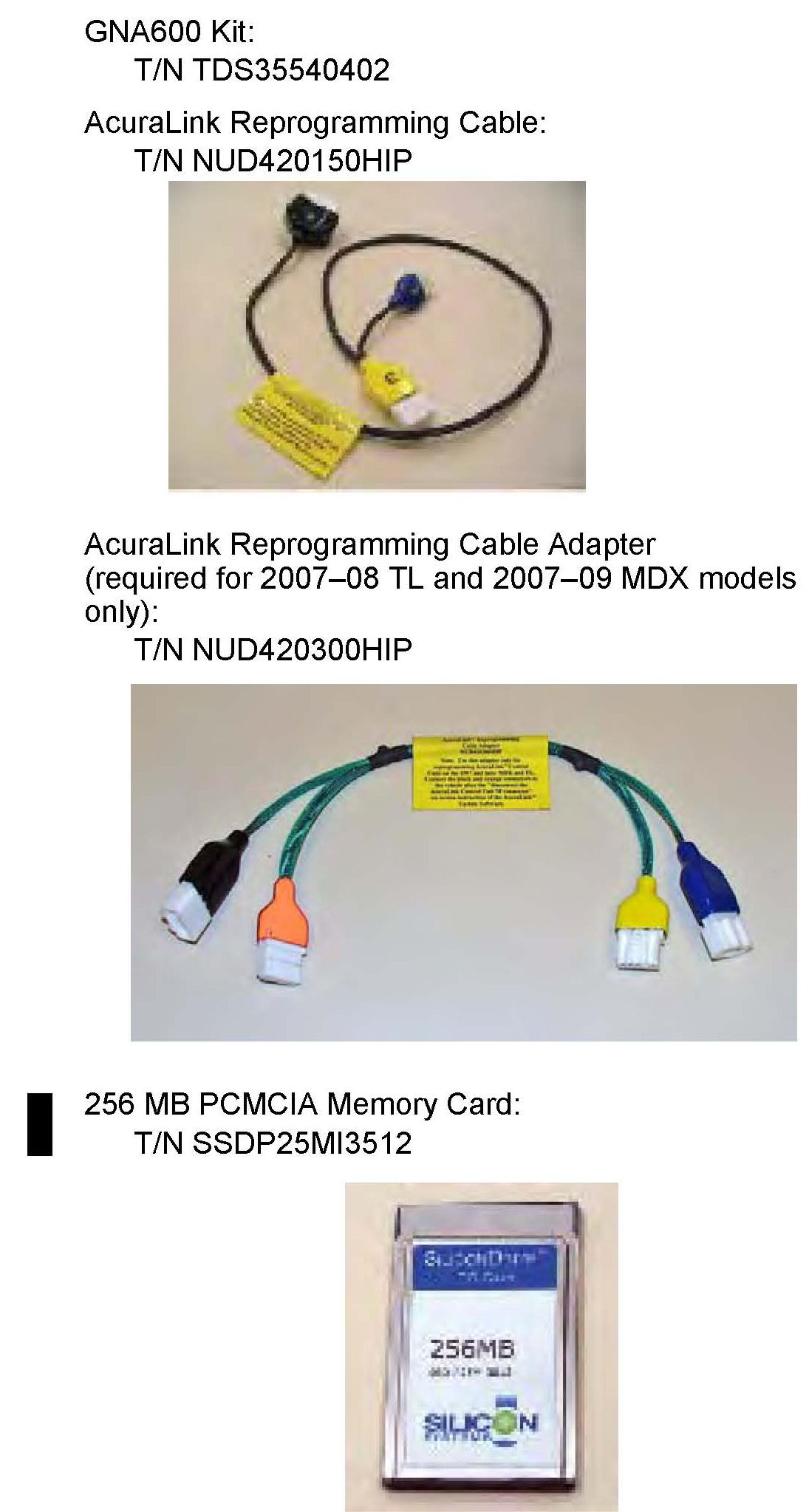 The GNA600 kit, the reprogramming cable, the cable adapter, and the memory card are available through the Acura Tool and Equipment Program.