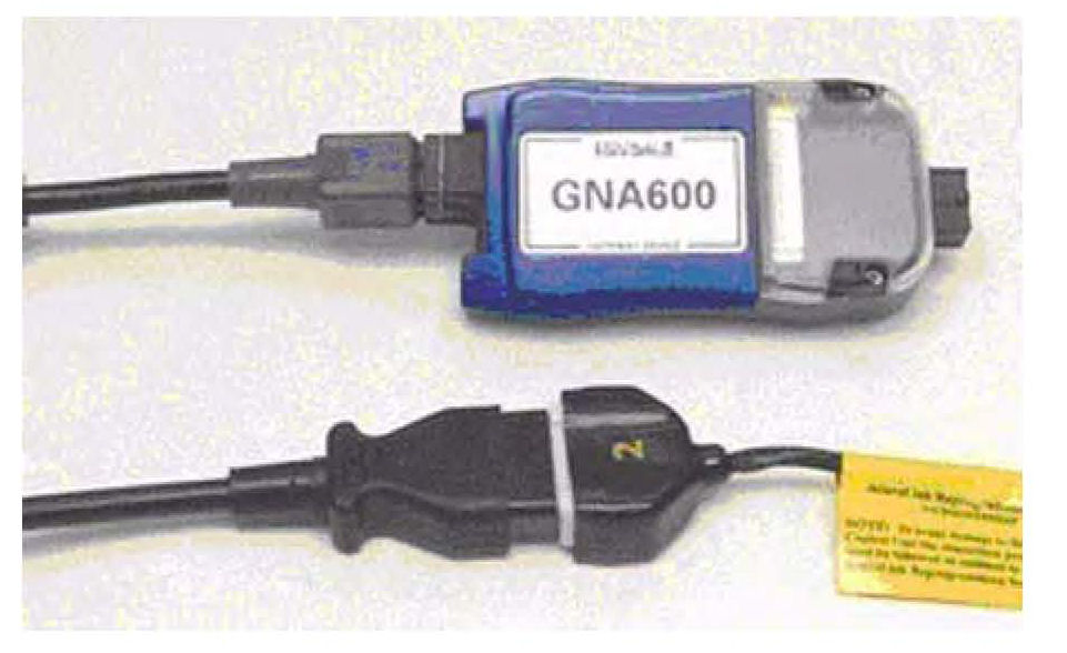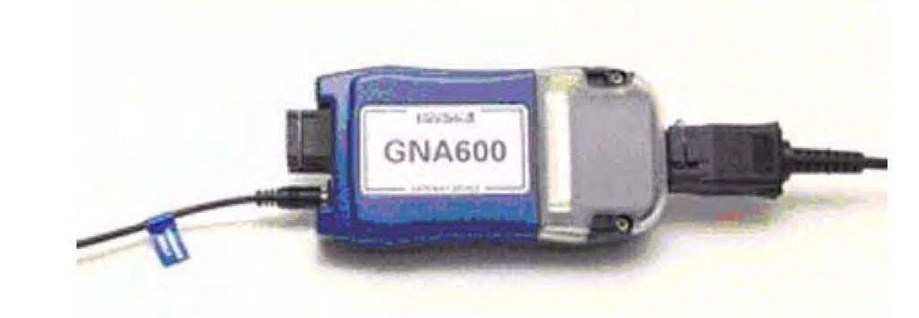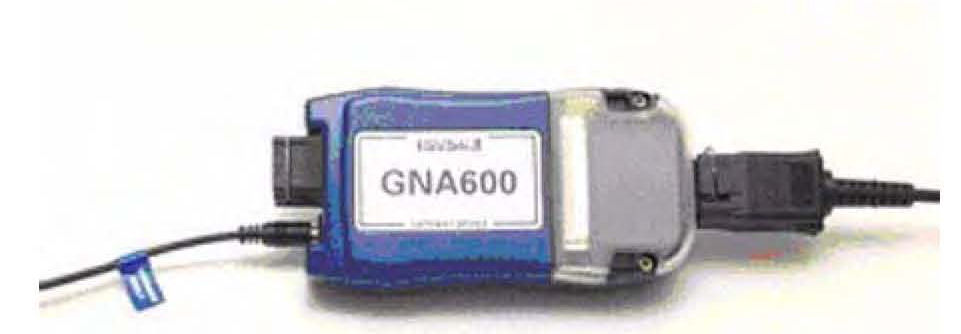 8. Connect the GNA600 unit to the power supply unit, and connect the power supply unit to an electrical outlet. The GNA600 unit starts a self-check, and after about 30 seconds, the LEDs on the GNA600 unit flash green and yellow. This indicates the GNA600 is ready to capture the current program ID on the vehicle.