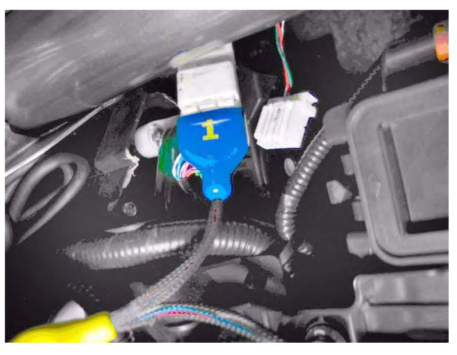 11. Connect the blue No. 1 connector of the AcuraLink reprogramming cable to the 5P connector (with male terminals) in the vehicle.