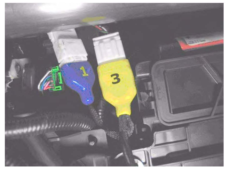 15. Disconnect the yellow No. 3 connector of the reprogramming cable from the vehicle.