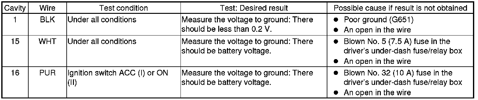 4. Reconnect the connector, and make these input tests at the connector.