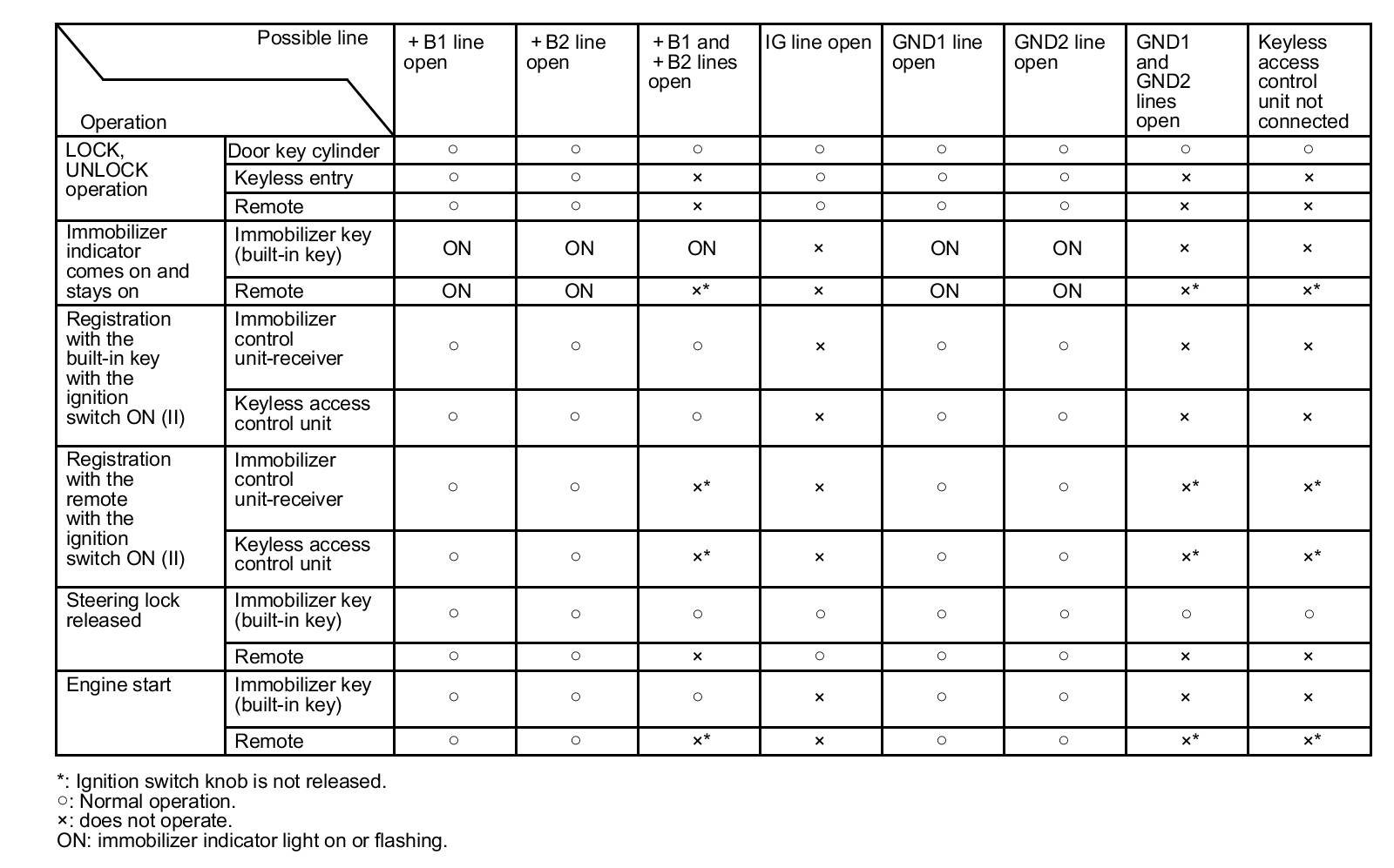 NOTE: If the ignition switch is faulty (a short to power in the wire), the immobilizer code identification is not performed, so the indicator does not come on. But the engine is able to start in this condition.